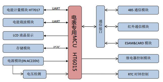 3、MCU芯片可替换为更大Flash和RAM的HT6025芯片,与HT6015完全兼容,将原方案升级至支持国网698协议的电表。此外还可与HT6215完全兼容,省略一颗外部32.768K晶振和RTC校验步骤。